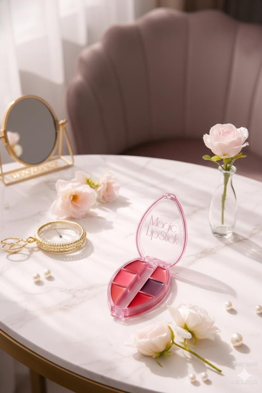 Product Name: 6-Shade Lipstick Palette Matte & Shimmer Finish Lip Colors�Package Contains: It has 1 Pack of�6-Shade Lipstick Palette Matte & Shimmer Finish Lip Colors�Material: CreamProduct Dimension: 10 x 10 x 8 cmCombo Pack: Pack of 1Weight: 65 gmsAdditional Information:�6 Stunning Lip Shades in One Palette: Includes a versatile mix of matte and shimmer lip colors, suitable for everyday wear, office looks, casual outings, festive makeup, and party glam.